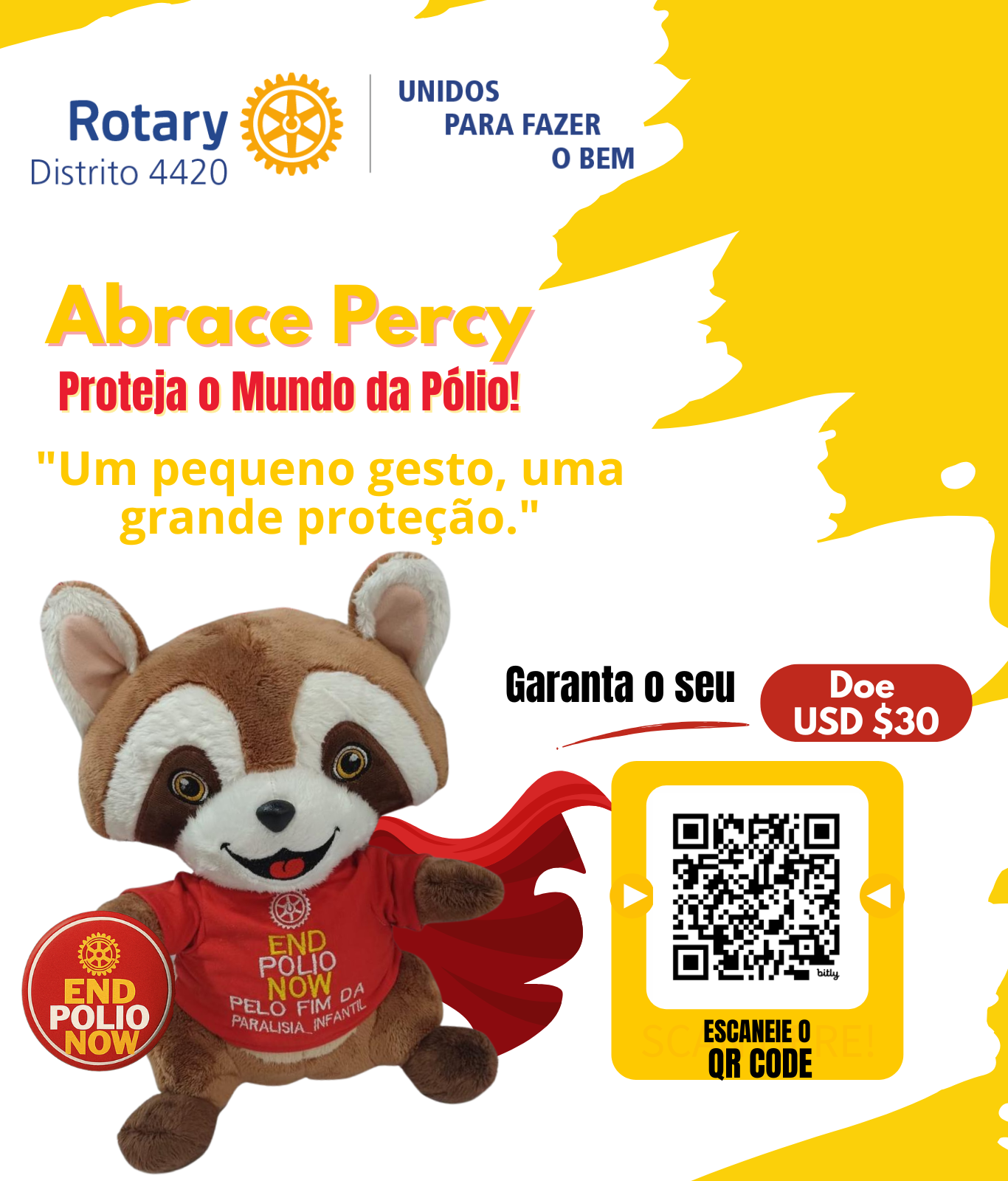 DOE $30, ABRACE PERCY E PROTEJA O MUNDO DA PÓLIO!